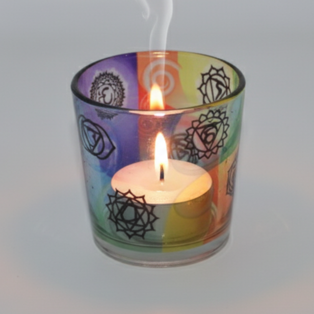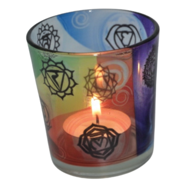 Éveillez votre espace avec le Bougeoir en Verre 7 Chakras, un symbole de l’équilibre et de l’harmonie. Conçu pour accueillir des bougies votives et des chauffe-plats, ce bougeoir magnifique représente les sept chakras, les centres d'énergie essentiels au bien-être et à la vitalité du corps.