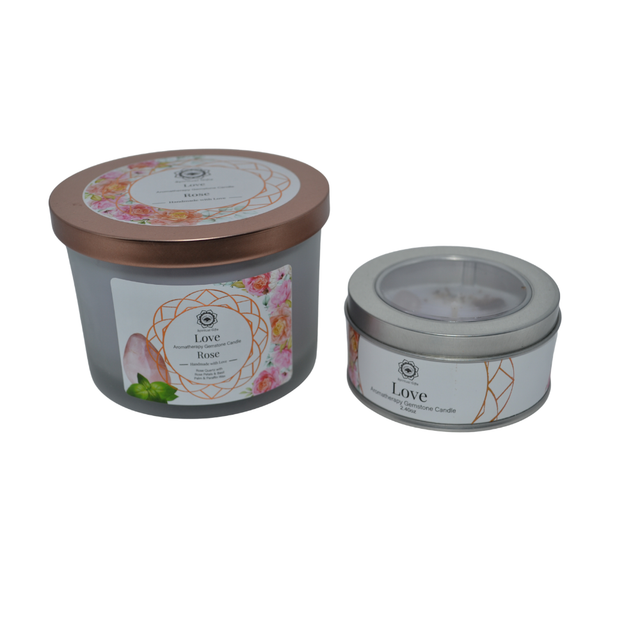 Bougie Green Tree : Amour - Quartz Rose + Rose et Basilic