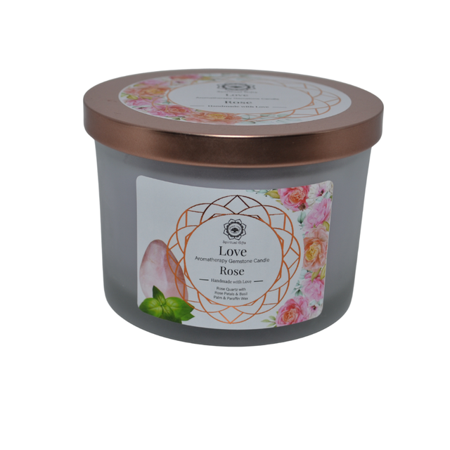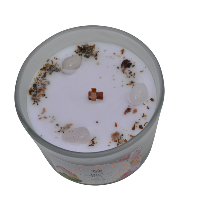 Laissez-vous emporter par l'amour avec la bougie artisanale "Amour" de Green Tree, harmonisant le quartz rose apaisant avec l'envoûtante senteur de rose et une touche de basilic frais pour créer une atmosphère à la fois romantique et chaleureuse. Fabriquée à la main en Inde, cette bougie unique est soigneusement incrustée de minéraux et de fleurs séchées.