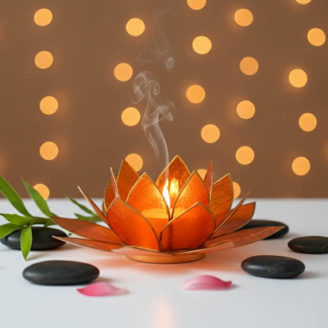 Apportez chaleur et vitalité à votre espace avec le Photophore Lotus en orange, un symbole de transformation et d'illumination. Ce magnifique photophore représente les sept centres d'énergie, les chakras, et crée une atmosphère apaisante et harmonieuse.
